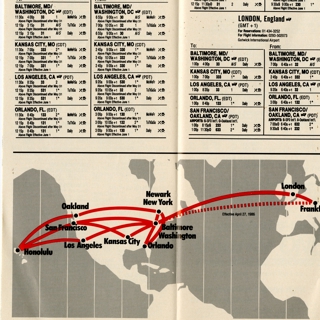 {{cite web |url=https://collection.sfomuseum.org/objects/1511908343/ |title=flight information packet: TWA (Trans World Airlines) |author=San Francisco International Airport Museum |accessdate=09 January 2026 |publisher=San Francisco International Airport Museum}}