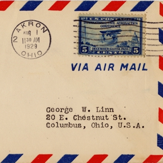 {{cite web |url=https://collection.sfomuseum.org/objects/1511922885/ |title=airmail flight cover: First airmail flight, Transcontinental Air Mail, New York - Chicago route |author=San Francisco International Airport Museum |accessdate=09 January 2026 |publisher=San Francisco International Airport Museum}}