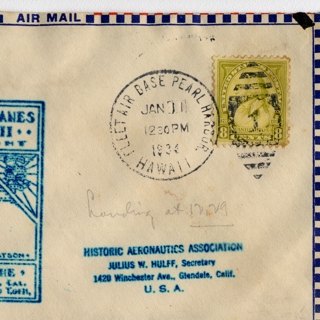{{cite web |url=https://collection.sfomuseum.org/objects/1511923763/ |title=airmail flight cover: United States Air Mail, FAM-19, first airmail flight, San Francisco - New Zealand route |author=San Francisco International Airport Museum |accessdate=09 January 2026 |publisher=San Francisco International Airport Museum}}