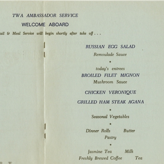 menu: TWA (Trans World Airlines), Ambassador (Business) Class
