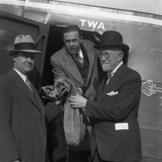 k. photograph: American Ambassador Bowers, Roig, and Lee at Los Cerrillos Airport;