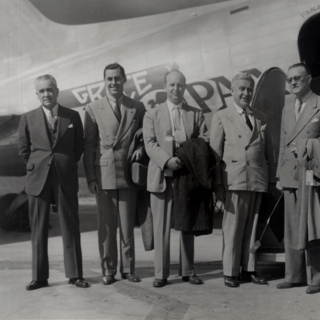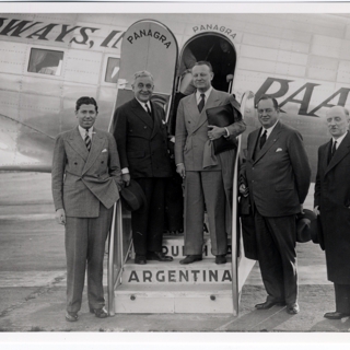 d. photograph: Roig and others in front of a Panagra plane;