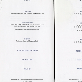 menu: Cathay Pacific Airways, Business Class
