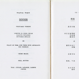 {{cite web |url=https://collection.sfomuseum.org/objects/1511927623/ |title=menu: Cathay Pacific Airways, Business Class |author=San Francisco International Airport Museum |accessdate=09 January 2026 |publisher=San Francisco International Airport Museum}}