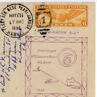 airmail flight cover: Combination U.S. Navy Survey Flight over Wake Island, March 8, 1935; U.S. Navy Hawaii, Midway Island Mass Flight, May 9-11, 1935; Return Flight, May 23-24, 1935