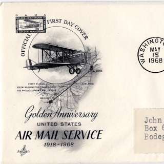 {{cite web |url=https://collection.sfomuseum.org/objects/1511953307/ |title=airmail flight cover: New regular airmail series, first day of issue for the 20-cent airmail stamp |author=San Francisco International Airport Museum |accessdate=10 January 2026 |publisher=San Francisco International Airport Museum}}
