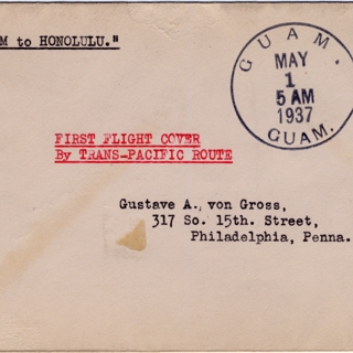 <div><strong>Airmail flight cover: Pan American Airways, first airmail flight, Guam - San Francisco route</strong> 05/01/1937</div>