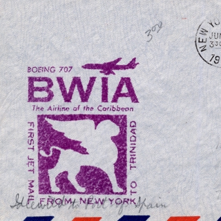 {{cite web |url=https://collection.sfomuseum.org/objects/1511954067/ |title=airmail flight cover: BWIA (British West Indies Airways), Boeing 707, New York - Barbados route |author=San Francisco International Airport Museum |accessdate=09 January 2026 |publisher=San Francisco International Airport Museum}}