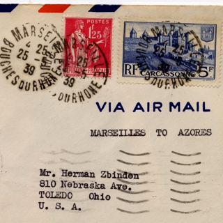 <div><strong>Airmail flight cover: Pan American Airways, FAM-18, first airmail flight, Marseilles - New York route</strong> 05/25/1939</div>