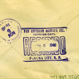 {{cite web |url=https://collection.sfomuseum.org/objects/1511954345/ |title=airmail flight cover: Pan American Airways, 1946 airmail test |author=San Francisco International Airport Museum |accessdate=10 January 2026 |publisher=San Francisco International Airport Museum}}