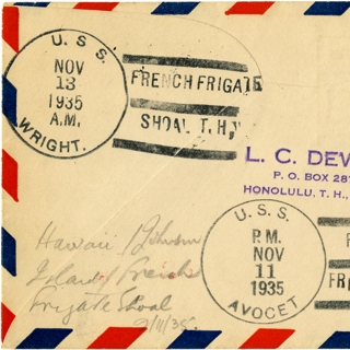 {{cite web |url=https://collection.sfomuseum.org/objects/1511954465/ |title=airmail flight cover: Mass naval flight, November 1935 |author=San Francisco International Airport Museum |accessdate=18 January 2026 |publisher=San Francisco International Airport Museum}}