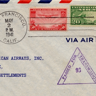 <div><strong>Airmail flight cover: Pan American Airways, first airmail flight, Singapore - San Francisco route</strong> 05/10/1941</div>