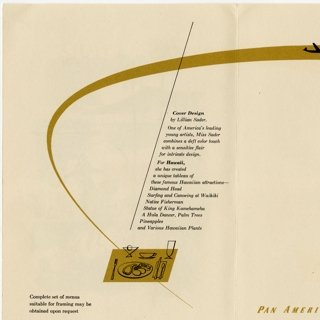 {{cite web |url=https://collection.sfomuseum.org/objects/1511956475/ |title=menu: Pan American World Airways |author=San Francisco International Airport Museum |accessdate=09 January 2026 |publisher=San Francisco International Airport Museum}}