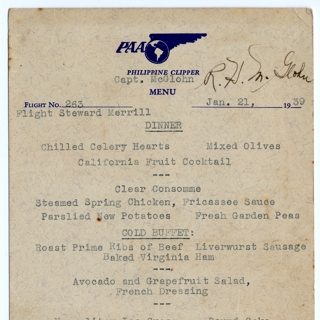 {{cite web |url=https://collection.sfomuseum.org/objects/1511956997/ |title=menu: United Air Lines |author=San Francisco International Airport Museum |accessdate=09 January 2026 |publisher=San Francisco International Airport Museum}}