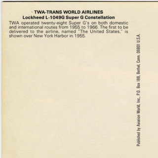postcard: TWA (Trans World Airlines), Lockheed L-1649A Starliner Constellation