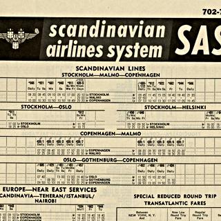 {{cite web |url=https://collection.sfomuseum.org/objects/1762681027/ |title=timetable: Scandinavian Airlines System (SAS), pocket schedule, Europe and Asia |author=San Francisco International Airport Museum |accessdate=09 January 2026 |publisher=San Francisco International Airport Museum}}
