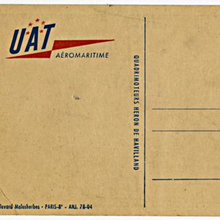 {{cite web |url=https://collection.sfomuseum.org/objects/1762684069/ |title=postcard: Union Aeromaritime de Transport (UAT), Douglas DC-6 |author=San Francisco International Airport Museum |accessdate=10 January 2026 |publisher=San Francisco International Airport Museum}}