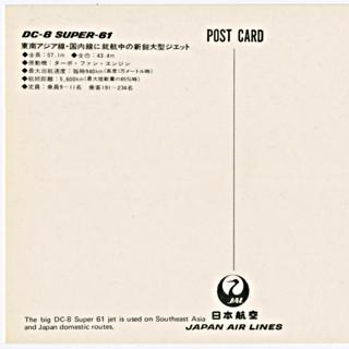 {{cite web |url=https://collection.sfomuseum.org/objects/1762684795/ |title=postcard: Japan Air Lines, Douglas DC-8, Mt. Fuji |author=San Francisco International Airport Museum |accessdate=09 January 2026 |publisher=San Francisco International Airport Museum}}