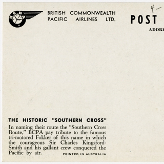 {{cite web |url=https://collection.sfomuseum.org/objects/1763195315/ |title=timetable / route map: New Southern Transcontinental Air Mail Service |author=San Francisco International Airport Museum |accessdate=19 January 2026 |publisher=San Francisco International Airport Museum}}