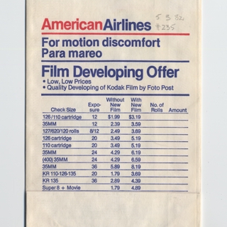 <div><strong>Airsickness bag: American Airlines</strong> 1980s</div>