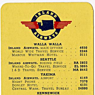 timetable: Inland Airways, pocket schedule