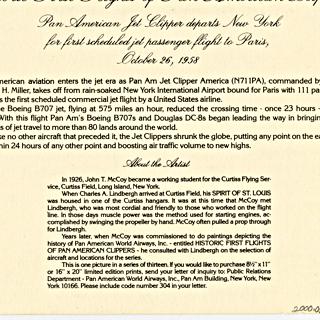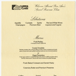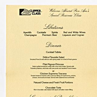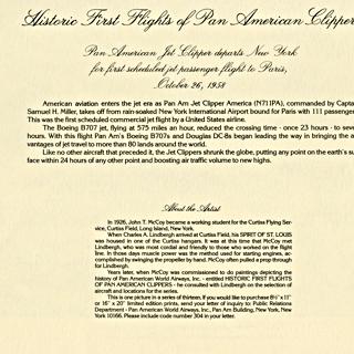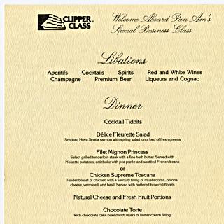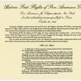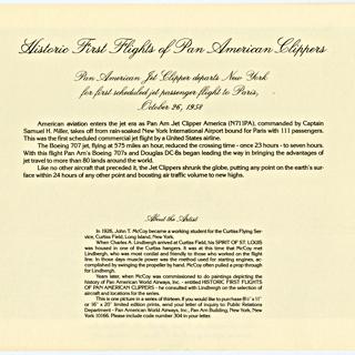 menu: Pan American World Airways, Historic First Flights series, Boeing 707