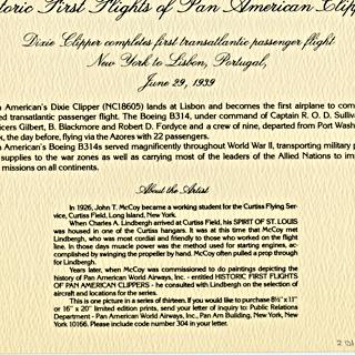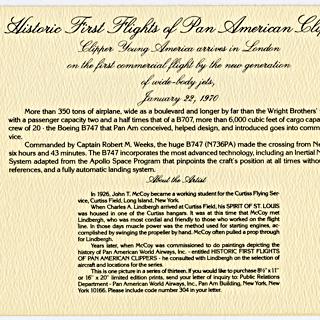 {{cite web |url=https://collection.sfomuseum.org/objects/1779667273/ |title=menu: Pan American World Airways, Historic First Flights series, Boeing 707 |author=San Francisco International Airport Museum |accessdate=09 January 2026 |publisher=San Francisco International Airport Museum}}