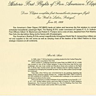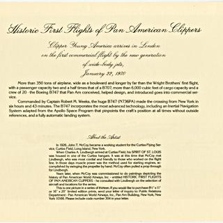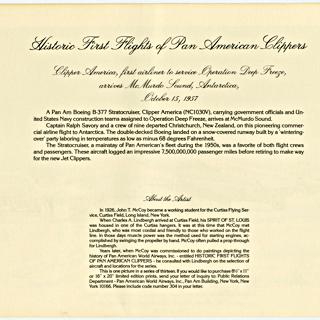 menu: Pan American World Airways, Historic First Flights series, Boeing 707