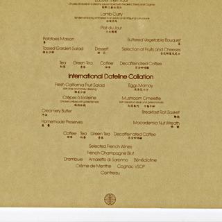 <div><strong>Menu: Pan American World Airways</strong> c. 1980</div>