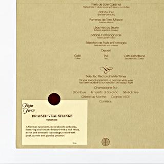 <div><strong>Menu: Pan American World Airways</strong> c. 1985</div>