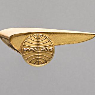 <a href="https://collection.sfomuseum.org/objects/1780379553/"><img src="https://static.sfomuseum.org/media/178/037/959/3/1780379593_bOQqgRqZ5HjhQsN5aUm9K4x59htB137E_z.jpg" alt="flight attendant wing: Pan American World Airways" /></a>