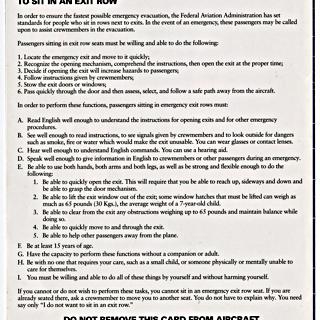 safety information card: Virgin America, Airbus A320