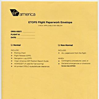 ETOPS flight packet: Virgin America