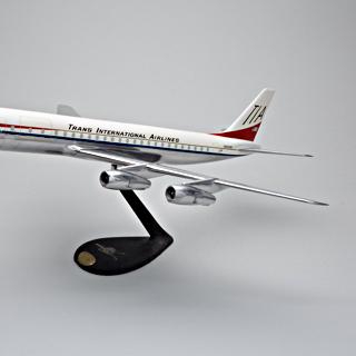<a href="https://collection.sfomuseum.org/objects/1897196783/"><img src="https://static.sfomuseum.org/media/189/719/702/9/1897197029_HPhQRQEXYExeLwiL8Og9x2tWTPn7N4Yq_z.jpg" alt="model airplane: Trans International Airlines, Douglas DC-8-51" /></a>