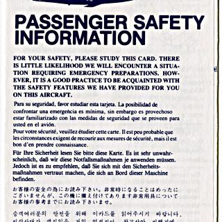 <div><strong>Safety information card: Frontier Airlines, Boeing 737</strong> c. 1975</div>