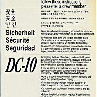 {{cite web |url=https://collection.sfomuseum.org/objects/1914622445/ |title=safety information card: United Airlines, McDonnell Douglas DC-10 |author=San Francisco International Airport Museum |accessdate=10 January 2026 |publisher=San Francisco International Airport Museum}}