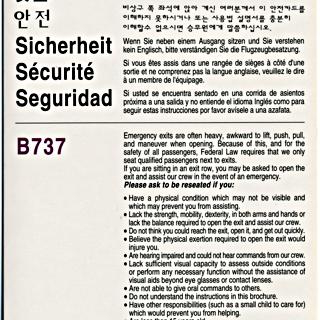 safety information card: United Airlines, Airbus A319