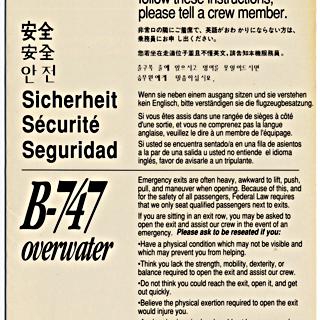 <div><strong>Safety information card: United Airlines, Boeing 747</strong> 1992</div>