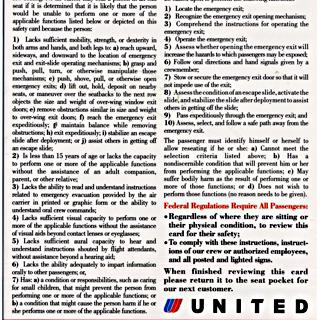 safety information card: United Airlines, Airbus A320