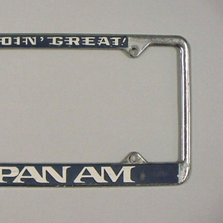 {{cite web |url=https://collection.sfomuseum.org/objects/2014978569/ |title=license plate frame: Pan American World Airways |author=San Francisco International Airport Museum |accessdate=04 April 2026 |publisher=San Francisco International Airport Museum}}