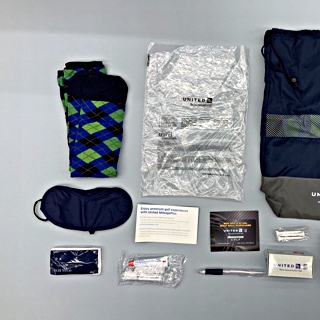 amenity kit: United Airlines, BusinessFirst class, PGA Tour